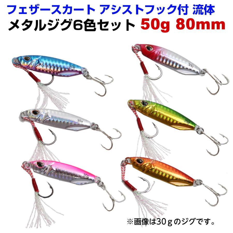 送料無料 I Loop メタルジグ セット 50g 80mm フェザースカート アシストフック 付 6色 6個セット ルアーセット ライトショア ジギング アジング 青物 Lf Lf094jig6c50g アウトドア バッグ専門 くらスペ 通販 Yahoo ショッピング